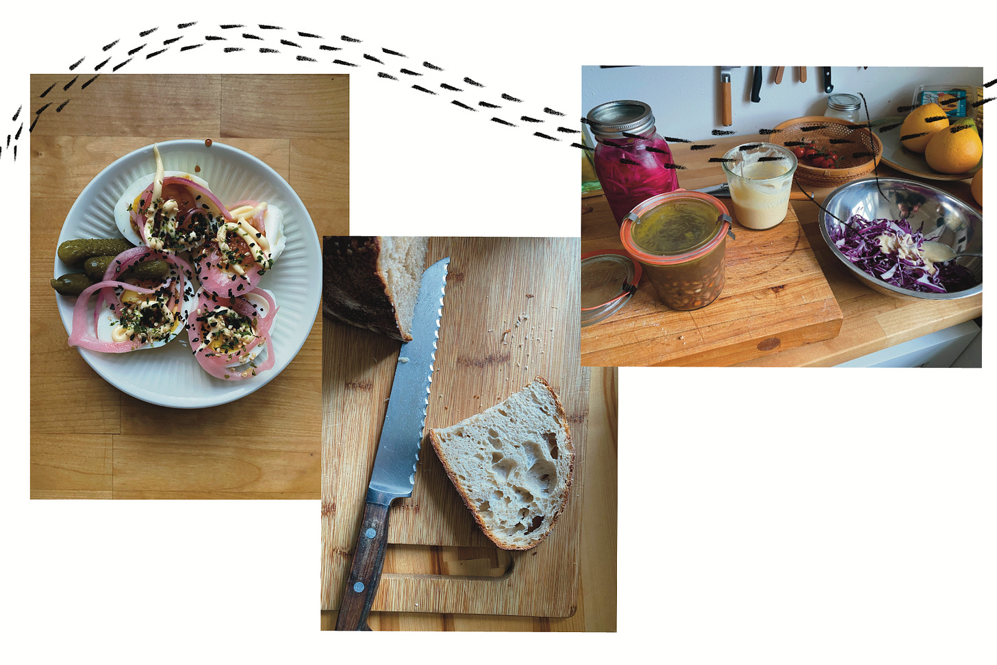 eating…. Six and a half minute eggs. Cooking through Samin Nosrat’s new Good Things cookbook, and making multiple batches of the Sesame Ginger dressing (here’s the recipe on NYT Cooking, and on a non-paywalled blog) and pickled red onions. Plus sugar cookies, with toddler assistance. Lots of sourdough (made Tartine book style).